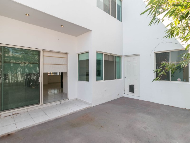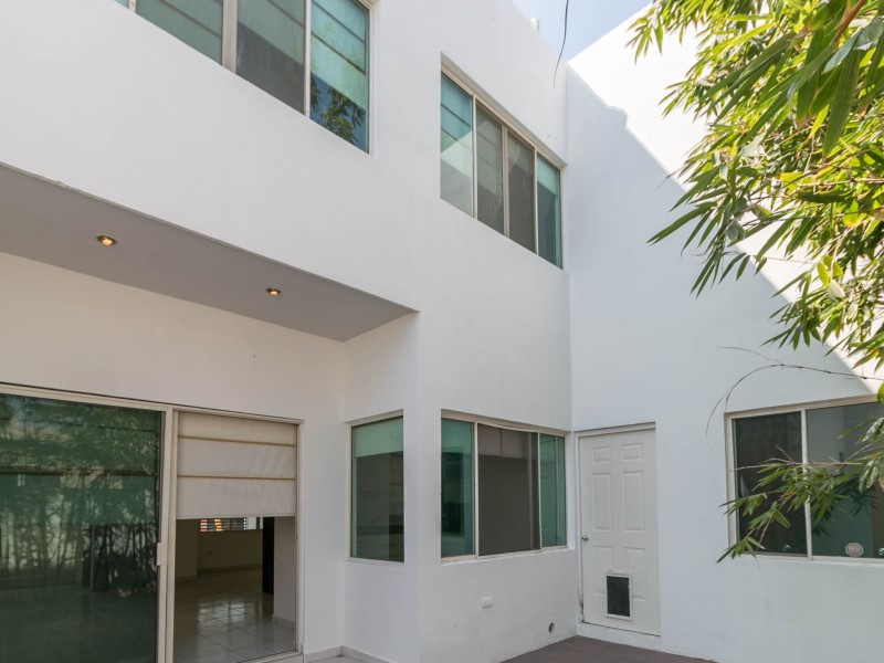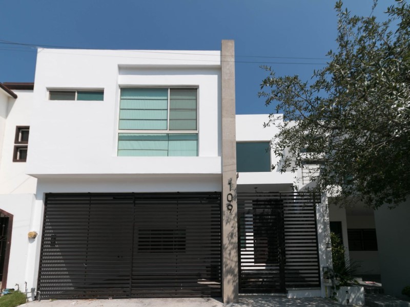 Preciosa casa diseñada con espacios amplios, excelente iluminación y doble altura. Ubicación privilegiada por estar en calle amplia, que permite estacionarse en batería. Cuenta con dos plantas, la primera se integra con su recibidor doble altura, espacios abiertos en sala, comedor, cocina y acceso al patio con puertas corredizas. Baño social. Cuarto de lavandería, cuarto de servicio y pasillo. Las escaleras se convierten en punto focal por su diseño y su recubrimiento de madera recién pintada. La Segunda Planta cuenta con estancia amplia, habitación principal con baño y closet. Habitaciones secundarias una con closet y baño compartido. Se destaca los recubrimientos de muro en área social, los bambús en el patio y la fachada contemporánea. Cocina con estufa nueva y campana. Incluye 4 Mini splits. 4 abanicos, lámparas decorativas, persianas. Cochera con portón. Pintura interior y exterior nueva. Con gusto atiende Claudia Cantú (teléfono oculto) / (teléfono oculto) (url oculto) #ref:CAS_139