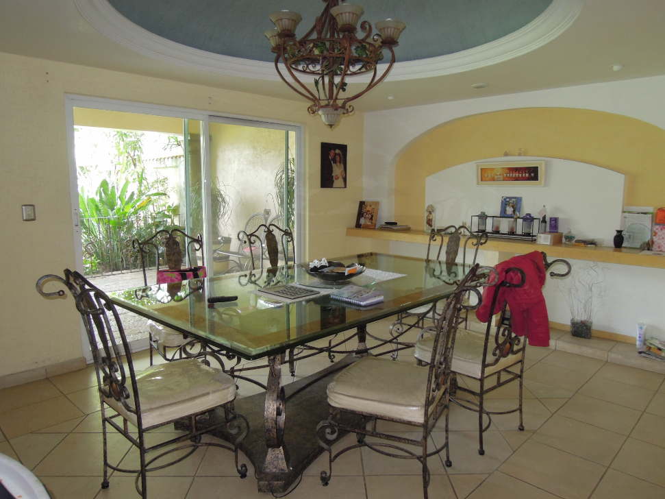 For Sale Cuernavaca Inmobiliaria le ofrece a la venta esta linda casa que se encuentra en la zona dorada de Cuernavaca, dentro de un fraccionamiento con vigilancia las 24 horas del dia La casa se encuentra construida en dos niveles y cuenta en el primero de ellos con sala, comedor con acceso directo a la terraza, cocina equipada con isla y barra de granito, despensero, medio bano, un estudio o recamara con closet y bano completo, patio de servicio y una linda fuente en el recibidor, en el segundo nivel cuenta con una hermosa cupula que le da el detalle de distincion a la propiedad, cuatro recamaras, la recamara principal con vestidor, jacuzzi, balcon con vista a la alberca y tapanco, todas las recamaras secundarias cuenta con closet y bano completo; ademas dentro de la propiedad podemos encontrar un hermoso y amplio jardin, alberca con jacuzzi y cascada, una linda terraza con asador ideal para disfrutar del agradable clima de Cuernavaca la ciudad de la eterna primavera La propiedad tambien cuenta con estacionamiento techado con porton electrico para tres autos, cisterna de 12,000 litros, dos tinacos de 1,100 litros y tanque de gas estacionario Adquierala y viva feliz Informes y ventas a los telefonos 01 777 3229523, 01 777 2793549 o 50 For Sale Cuernavaca Inmobiliaria y Constructora, pagina web: http://wwwforsalecuernavacacom