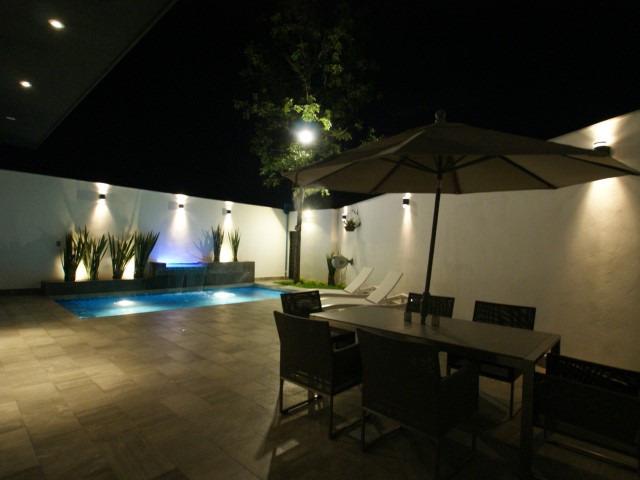 Con gusto atiende Paty. celular: (81) 1277-1271 nextel: 1774-0223 PRIMERA PLANTA Cochera para 3 carros Jardín exterior Pasillo Sala - Comedor Sala de Cine Estudio Baño Social Cocina integral con barra Lavandería Cuarto de Servicio Área de asador Baño completo Bodega 100 metros libres de patio Alberca Cuarto de máquinas SEGUNDA PLANTA Estancia muy amplia 3 Habitaciones con baño-vestidor 3 Terrazas Gym Mueble de Blancos Área de estudio EQUIPAMIENTO Fachada con mármol y deck Puerta Principal de pivote en madera de Palo Santa y chapa de seguridad Puertas interiores sólidas en madera de Nogal Puertas entre muros en Cocina y Sala de Cine Placas de mármol de 1.40 mts. Planta Baja y escaleras Duela de ingeniería 1/8' espesor en Segunda Planta Porcelanato en baños y cuarto de servicio Cubierta de mármol en baño social Cubierta de Quarzo Estelar en baño principal y Cocina Cubierta de Quarzo Mate en baños secundarios Cubierta de Mármol en lavandería Muebles de baño en madera de Nogal Espejos en todos los baños Canceles de vidrio templado en todos los baños Cocina integral en MDF con chapa de Fórmica y herrajes de lujo Vestidores en madera de banak Centro de Entretenimiento con escritorio en habitaciones secundarias Centro de Entretenimiento en madera de Nogal en Sala de Cine y Habitación Principal Centro de Entretenimiento en madera de Nogal y MDF en Estancia Altura de piso a techo 3.5 mts. Lámparas de madera en Sala y Escaleras Pasamano de Acero Inoxidable en Escaleras Pasamano de Acero Inoxidable y Madera de Encino en Estancia Recubrimiento de recinto en cubo de escalera Asador con cubierta de granito y muro con Onix Alberca con mosaico veneciano, iluminación, bomba y calefacción Deck en todas las terrazas Clima Central seccionado 18 toneladas Mini split en cuarto de servicio Portón eléctrico Cristal templado en Balcones Sonido Inteligente en Interior Planta Baja y Exterior Preparación de Proyector en Área Exterior y Sala de Cine Acústica en Sala de Cine Excelente iluminación natural Spots decorativos en todas las áreas Chimenea con Recubrimiento de madera de Nogal y cubierta de granito #ref:CAS_12