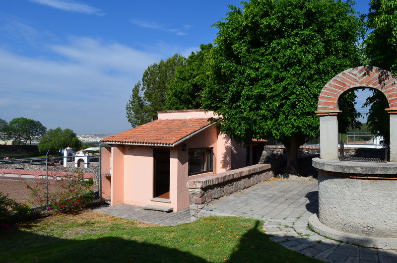 En el suburbio mas deseable de Querétaro, "La Rica" en Juriquilla, magnifica residencia estilo mexicano, con 310 metros cuadrados de construcción, sobre terreno de 1000 metros cuadrados. Bello jardín al frente, donde el desnivel del terreno permitió jugar con los espacios creando jardines escalonados hasta llegar al pórtico de entrada que conduce al lobby, como preámbulo para acceder a la sala con chimenea, doble altura y vista al jardín posterior, que se constituye en el eje principal del proyecto, comedor muy amplio y luminoso, con acceso al jardin, cocina integral, área de servicio con entrada desde el garage. Tres dormitorios en la planta baja, estudio y sala de televisión y roof garden en la segunda planta. Jardín posterior con terraza, en 3 niveles, al fondo parrilla y terraza y bungalow para visitas con baño completo y estudio. previa cita.