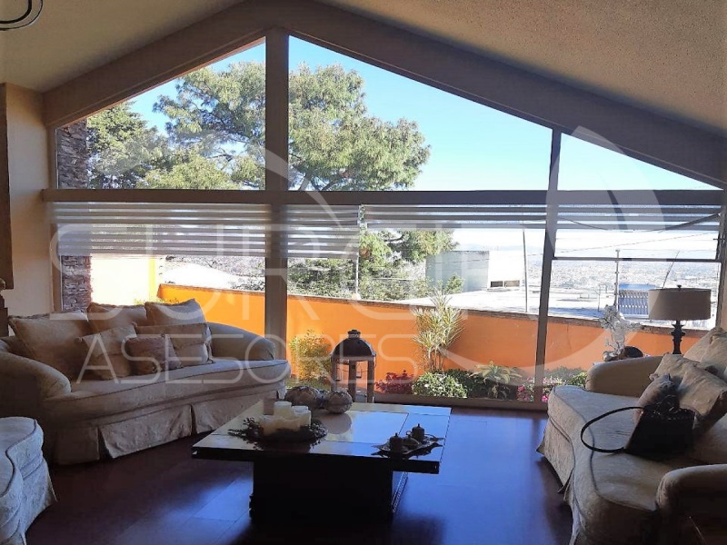 HERMOSA CASA EN VENTA CON TERRAZA EN VISTA BELLA Moderna construcción de un piso con desniveles y acabados en cantera. Cuenta con cochera cerrada para un auto, sala con chimenea, amplia cocina integral con desayunador, comedor, sala de TV, dos habitaciones con clóset, habitación principal con vestidor, dos baños completos con cancel, estudio, cuarto de servicio, patio, jardín con riego automático y terraza con excelente vista a la ciudad. Cuenta con todos los servicios disponibles, ademas barra electrificada, aljibe, gas estacionario, calentador y paneles solares. Excelente zona residencial, dentro de la ciudad cerca de Av. Camelinas y a unos minutos del Centro. Se puede vender sola o con de el departamento de al lado. ♦Departamento APA_1253 ¿TE INTERESA? LLAMA AL : (teléfono oculto) y 6904967 #ref:CASA_1254