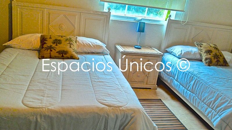 * 2 recámaras con aire acondicionado. 2 baños completos. rec principal con cama King Size, segunda recámara con dos camas Matrimoniales. Capacidad max. 6 personas. Camas: 1 King Size + 2 Matrimoniales. * Sala - comedor con Terraza. TV pantalla plana con SKY y DVD. * acceso a internet inalámbrico Wi-Fi gratis. * Cocina integral equipada con utensilios de cocina. * Balcón-Terraza con vista a la alberca y jardín con juegos infantiles. * Alberca panorámica con sombrillas y camastros. jacuzzi, mini-tobogan, fuente chapoteadero y palapa-bar. * Estacionamiento interior con seguridad las 24 horas. * Casa Club con: 2 Canchas de Squash + 1 de Tenis, Gimnasio con aparatos profesionales, Vapor, Salón de Usos Múltiples, ping-pong, y SPA. próximamente Minicine. Se entrega con blancos (sábanas y toallas baño/alberca) y servicio para 6 personas. SERVICIO DIARIO DE LIMPIEZA. Ventajas: * MAYOR SEGURIDAD > No es casa es departamento con acceso restringido y vigilancia las 24hrs. * La alberca es solo para la sección ZAFIRO, no para todo el condominio. * Sin problemas de estacionamiento: Estacionamiento interior con seguridad las 24 horas. * Condominio nuevo en Acapulco Diamante. * Servicio de camarista para aseo y limpieza. * BURGER KING y SUBWAY a 50 metros. * FARMACIA, DOMINOs PIZZA, OXXO y EXTRA a 100 metros. * Seguridad las 24 hrs. La entrada es siempre por la caseta de vigilancia. * PUEDES ENCONTRAR MÁS ECONOMICO PERO NO DE LA MISMA CALIDAD Y UBICACION en DIAMANTE LAKES. TARIFAS POR NOCHE: Temp. Baja Lu-Ju : $ 2,000 Pesos (min 3 noches) PUENTES / VERANO : $ 3,000 Pesos (min 3 noches) Semana Santa / Navidad : $ 3,500 Pesos Temp. Alta FIN de AÑO : $ 4,500 Pesos En Semana Santa, y Año Nuevo renta mínima 7 noches. CONTACTO: Nextel: 01(744)2541012 ID: 42*15*456710 Local: 01(744) 4813215 contacto@espaciosunicos.net.