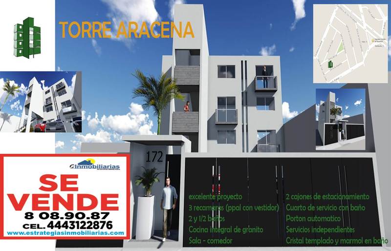 VENTA: Proyecto Torre Aracena Excelente proyecto de departamentos en Lomas 4ta, Espaldas de la Iglesia de la Sagrada Familia. 4 Exclusivos Depas. PRECIOS: DEPARTAMENTO PB: $2,200,000 VENDIDO PRIMER PISO $2,050,000 SEGUNDO PISO : $2,000,000 tERCER PISO: $1,780,000 PB, 1ro, 2do,: 153 m2 de superficie 3 recs , hall t.v. cocina cubierta granito, cto servicio, closets, 3ro: 135 m2 de superficie 2 recs, hall t.v., cocina cubierta granito, cto servicio, closets, terraza. Estacionamiento 2 autos. aljibe con bomba sumergible, sistema hidroneumático. tinaco. aMPLIOS ESPACIOS, acabados de primera excelente iluminación. Canceles de baños.