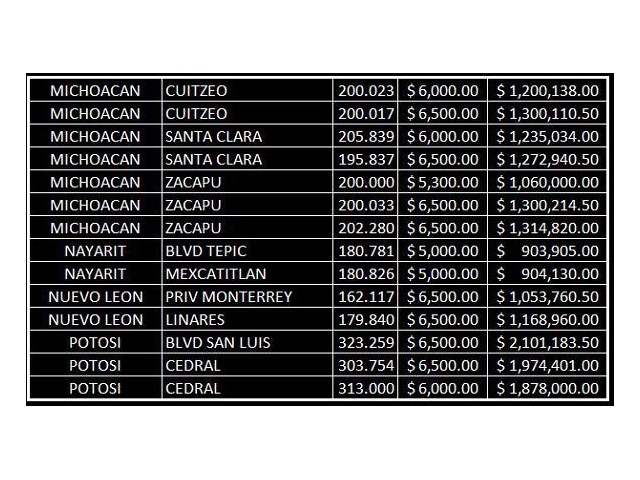 | Costo/m2: | 1,600 MXN |